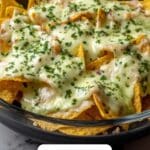 Sprinkle your shredded cheddar and Monterey Jack cheeses evenly over the top of the saucy tortilla chips. Cover the skillet and let the cheeses melt on low heat for about 2 to 3 minutes. When you uncover it, you’ll see a gooey, cheesy blanket that’s impossible to resist.