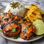 - Serve: Transfer the grilled chicken and pineapple to a serving platter. Garnish with chopped cilantro or parsley and serve with lime wedges for added freshness. Accompany with rice, salad, or grilled vegetables as desired.