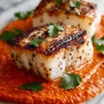 This Grilled Cod with Homemade Romesco Sauce is a flavorful, healthy dish combining tender, flaky cod fillets grilled to perfection and topped with a rich, smoky Romesco sauce made from roasted red peppers, tomatoes, nuts, and spices. Perfect for a quick weeknight dinner or an impressive meal for guests, this recipe offers vibrant Mediterranean flavors in just 25 minutes.