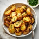 - Toss with Seasonings: In a large bowl, toss the potatoes with olive oil, minced garlic, salt, pepper, and dried Italian herbs until they are well coated and evenly seasoned.