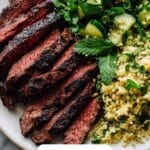 - Serve: Plate the sliced skirt steak over a bed of the lemon herb couscous salad and enjoy.