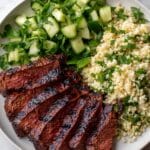 - Serve: Plate the sliced skirt steak over a bed of the lemon herb couscous salad and enjoy.