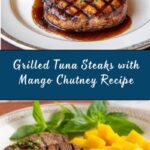 Deliciously fresh and flavorful grilled tuna steaks served with a sweet and tangy homemade mango chutney. This healthy and easy-to-make dish combines perfectly seared tuna with a tropical fruit salsa, making it a perfect main course for a light dinner or special occasion.