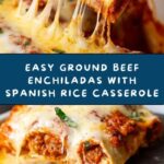 This Ground Beef Enchiladas recipe combines seasoned beef, flavorful Spanish rice, and rich enchilada sauce, all wrapped in warm flour tortillas and baked to perfection with melted cheddar cheese. Perfect for a comforting and hearty meal, these enchiladas are garnished with fresh cilantro and served with sour cream for added creaminess.
