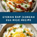 Gyeran Bap is a simple and comforting Korean egg rice dish featuring fluffy cooked rice topped with runny fried eggs, sesame oil, soy sauce, and garnished with sesame seeds and green onions. This quick and easy recipe is perfect for a satisfying breakfast or light meal.
