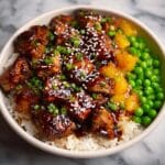 This Hawaiian Grilled Teriyaki Chicken features tender, juicy boneless chicken thighs marinated overnight in a sweet and savory teriyaki sauce made from soy sauce, sugars, mirin, garlic, and ginger. Grilled to perfection over medium-high heat and served with a thickened glaze, this dish offers a delicious taste of Hawaiian-inspired flavors perfect for a quick and flavorful meal.