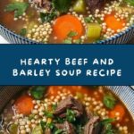 A warm and comforting Hearty Beef and Barley Soup made with tender stew beef, wholesome pearl barley, fresh vegetables, and rich beef broth. Perfect for a nutritious and satisfying meal.