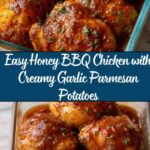 This High Protein Honey BBQ Chicken & Creamy Garlic Parmesan Potatoes recipe combines tender, flavorful chicken breasts glazed in a sweet and smoky honey BBQ sauce with rich, creamy garlic-infused Parmesan potatoes. Perfect for a hearty family dinner, this dish offers a balance of protein and comforting carbs with a deliciously savory twist.