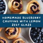 Delight in these homemade blueberry cruffins, a heavenly blend of croissant flakiness and muffin convenience, filled with a luscious blueberry compote and topped with a sweet vanilla glaze and crunchy raw sugar.