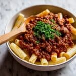 This classic Homemade Bolognese Sauce is a rich and hearty Italian meat sauce perfect for pasta dishes. Made with a blend of ground beef and pork sausage, sautéed vegetables, tomatoes, red wine, and finished with a touch of milk or cream, this slow-simmered sauce delivers deep, comforting flavors in every bite.