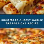 This Homemade Cheesy Garlic Breadsticks recipe combines soft, freshly baked pizza dough with a flavorful garlic butter spread and a generous topping of melted mozzarella and Parmesan cheeses. Perfect as an appetizer or snack, these breadsticks are easy to prepare, bursting with cheesy goodness, and served warm with marinara dipping sauce for an authentic Italian-American experience.