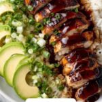 Honey Chipotle Chicken is a flavorful and vibrant dish featuring tender grilled chicken breasts marinated in a smoky, sweet, and tangy chipotle and honey sauce. Served over a bed of rice and topped with a fresh avocado and corn salsa alongside crumbled queso fresco, this recipe offers a perfect balance of spicy heat, sweetness, and citrus brightness, making it an ideal meal for any occasion.