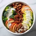 A refreshing and crunchy Honeycrisp Apple Broccoli Salad combining crisp apples, fresh broccoli florets, dried cranberries, and sliced almonds, all tossed in a creamy honey-mayo dressing with a hint of apple cider vinegar and sharp cheddar cheese. Perfect as a vibrant side dish or light lunch.