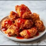 Crispy and flavorful Hot Honey Chicken Nuggets combine tender chicken breast pieces coated in a seasoned flour and buttermilk batter, fried to golden perfection, then drizzled with a spicy-sweet hot honey sauce made from butter, honey, and Sriracha. Perfect as a spicy snack or appetizer with a balanced kick of heat and sweetness.
