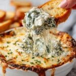This Hot Spinach Artichoke Dip is a creamy, cheesy appetizer perfect for parties and gatherings. Made with a blend of spinach, artichoke hearts, cream cheese, sour cream, and a mix of mozzarella and Parmesan cheeses, it’s baked until hot and bubbly with a lightly golden top. Serve it warm with tortilla chips, crackers, or fresh veggies for an irresistible starter.