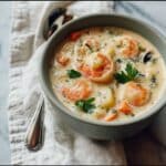 This comforting Irish Seafood Chowder combines fresh salmon, shrimp, and crabmeat in a creamy, flavorful broth enriched with aromatic vegetables, Greek cream cheese, and crispy bacon. Perfect for chilly evenings, it offers a deliciously hearty meal that warms you from the inside out.