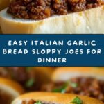 These Italian Garlic Bread Sloppy Joes combine the classic comfort of sloppy joes with the aromatic flavors of Italian garlic bread. Ground beef or Italian sausage is cooked with marinara sauce, Italian seasoning, and melted cheese, then served on crispy, buttery garlic bread rolls for a delicious twist on a family favorite sandwich.