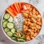Korean BBQ Rotisserie Chicken is a flavorful twist on a classic, combining tender store-bought rotisserie chicken with bold, savory-sweet Korean BBQ flavors. This quick and easy recipe maximizes taste with minimal prep, featuring a spicy gochujang sauce sautéed on the stovetop and perfect for a weeknight dinner.