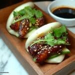- Assemble the Bao: Gently open each steamed bun and fill with the glazed chicken. Top with sliced green onions and a sprinkle of toasted sesame seeds. Serve immediately while hot for the best flavor and texture.