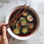 - Chill: Cover the bowl and refrigerate the salad for about 30 minutes. This chilling time allows the cucumbers to absorb the dressing flavors and develop a perfect balance of spicy and sour notes.