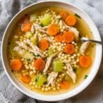 A comforting and hearty leftover turkey soup recipe that transforms cooked turkey into a flavorful, nutritious meal featuring sautéed vegetables, tender giant couscous, and aromatic herbs, perfect for a quick and easy dinner.