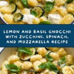 A fresh and vibrant Lemon and Basil Gnocchi recipe featuring gluten-free potato gnocchi sautéed with zucchini, spinach, and a bright lemon-Parmesan sauce, topped with fresh mozzarella and basil leaves. This easy stovetop dish is perfect for a light yet satisfying meal.