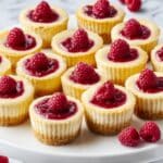 These Lemon Mini Cheesecakes with Berry Swirl are delightful bite-sized treats featuring a creamy lemon-infused cheesecake with a sweet and tangy raspberry swirl on a crunchy vanilla wafer crust. Perfect for parties or a refreshing dessert, these cheesecakes are baked to a perfect set and chilled to enhance their texture and flavor.