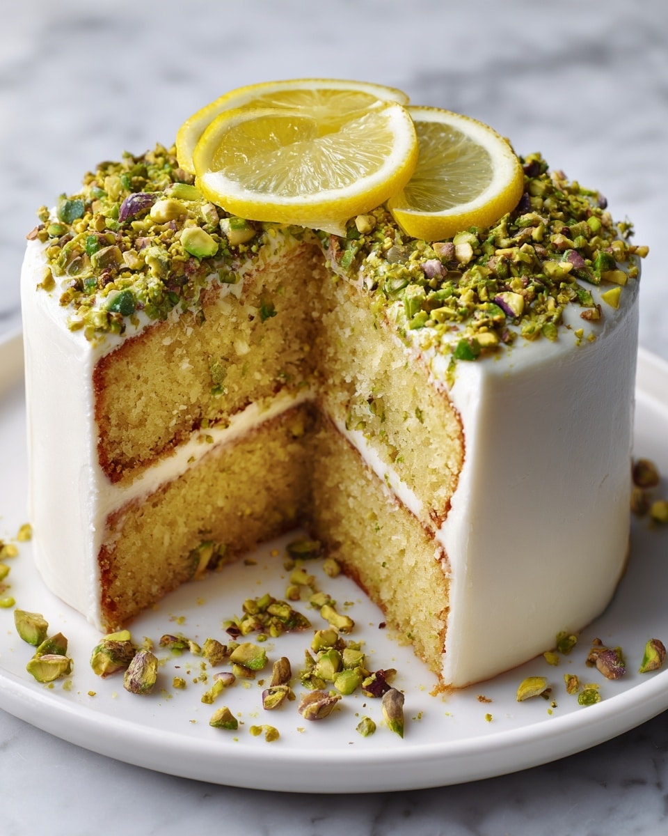 To elevate your Lemon Pistachio Cake Recipe visually and flavor-wise, try dusting it lightly with powdered sugar or topping it with a handful of roughly chopped pistachios for extra crunch. A thin drizzle of lemon glaze or a few edible flowers can also add a stunning finishing touch that will wow guests.