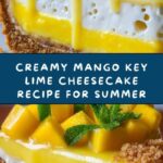 To make your Mango Key Lime Cheesecake Recipe even more enticing, top it with a dollop of whipped cream, fresh mango slices, and a sprinkling of lime zest. These simple garnishes add a lovely visual appeal and a fresh burst of flavor that complements the richness of the cheesecake perfectly.