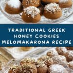 Melomakarona are traditional Greek honey cookies, infused with warm spices and soaked in a fragrant honey syrup. These soft, oval-shaped treats are perfect for holiday celebrations and are topped with a crunchy walnut and cinnamon mixture for the perfect texture contrast.