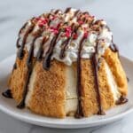 - Serve: Immediately drizzle with honey or chocolate sauce, top with whipped cream, and sprinkle optional cinnamon sugar for garnish. Serve promptly to enjoy the contrast of hot crispy coating and cold ice cream inside.