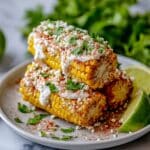 This Mexican Street Corn recipe, also known as elote, features grilled corn on the cob slathered with a creamy, tangy sauce made from mayonnaise, sour cream, lime juice, and garlic. It’s then topped with crumbly cotija cheese, chili powder, and fresh cilantro for a perfect balance of smoky, spicy, and rich flavors. Served with lime wedges, this vibrant side dish is a favorite summer treat that’s easy to prepare and guaranteed to impress at any barbecue or family meal.