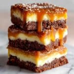 Milky Way Caramel Cheesecake Brownies feature a rich, fudgy brownie base layered with creamy cheesecake, chopped Milky Way bars, and a luscious caramel drizzle, creating a decadent dessert packed with chocolate and caramel flavors.