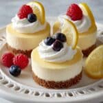 - Serve with toppings: Before serving, optionally garnish each mini cheesecake with whipped cream, lemon curd, or fresh lemon slices for added flavor and presentation.