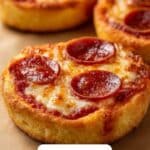 Feel free to get creative! Sliced mushrooms, chopped bell peppers, olives, cooked sausage, or even pineapple chunks are great options. The key is to keep toppings small and evenly distributed so each mini pizza cooks evenly.