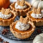 - Serve: Before serving, optionally top each mini pumpkin pie with whipped cream for added richness and presentation.