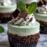 These Mint Mini Cheesecakes are delightful individual-sized desserts featuring a chocolate cookie crust and a creamy mint-flavored filling. Perfectly balanced with peppermint extract and mini chocolate chips, they offer a refreshing twist on classic cheesecake. Ideal for parties, holidays, or any time you crave a festive treat.