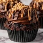 Delight in these mouth-watering irresistible German Chocolate Cupcakes, featuring a rich cocoa batter studded with pecans and shredded coconut. Perfectly moist and topped with your favorite German chocolate frosting, these cupcakes are a decadent treat for any occasion.