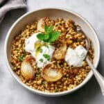 - Assemble and Serve: Once the bulgur and lentil mixture is cooked, fluff it gently with a fork. Serve the mujaddarat bulgur topped with the reserved caramelized onions and a generous dollop of the chilled cucumber mint yogurt on the side for a refreshing contrast.