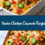 This Nacho Chicken Casserole is a hearty and flavorful one-dish meal combining tender cooked chicken, black beans, creamy chicken soup, spicy Rotel tomatoes, and taco seasoning, layered with crunchy tortilla chips and melted Colby Jack cheese. Baked to bubbly perfection and garnished with fresh tomatoes, cilantro, and jalapeños, it’s perfect for a quick weeknight dinner or casual gatherings.