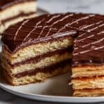 This No-Bake Chocolate Biscuit Cake is a decadent, easy-to-make dessert combining crunchy biscuits with rich melted chocolate, buttery sweetness, and optional nuts and dried fruits for added texture. Perfect for a quick indulgent treat without needing an oven, it sets in the fridge and is ideal for chocolate lovers seeking a no-fuss cake.