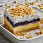 This No Bake Lemon Blueberry Dessert is a refreshing and easy-to-make treat featuring a buttery graham cracker crust, a creamy lemon pudding layer, sweet blueberry topping, and a fluffy whipped cream finish. Perfect for warm days or when you want a simple yet impressive dessert without turning on the oven.