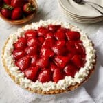 - Garnish and Serve: Before serving, decorate the top of the pie with additional sliced strawberries for a fresh and appealing presentation.