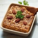 This No-Flour, No-Sugar Oatmeal Breakfast Bake is a wholesome, naturally sweetened breakfast option perfect for a nutritious start to your day. Made with rolled oats, ripe bananas, and applesauce as natural sweeteners, this bake is packed with fiber and protein, offering a hearty, comforting meal that is simple to prepare and customizable with nuts and berries.