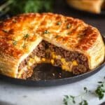 One-Pan Cheeseburger Pie is a comforting, easy-to-make dish that combines browned ground beef, sautéed vegetables, melted cheese, and savory seasonings all baked in a flaky pie crust. Perfect for a family meal, this recipe delivers classic cheeseburger flavors in a convenient pie form everyone will enjoy.