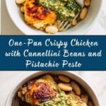 A flavorful one-pan meal featuring crispy, oven-roasted chicken thighs nestled on a bed of tender cannellini beans and cherry tomatoes, finished with a vibrant homemade pistachio basil pesto. This Mediterranean-inspired dish combines rich textures and bright flavors for a satisfying and elegant dinner that’s easy to prepare and clean up.