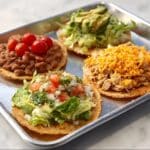 This Oven Baked Tostadas recipe features crispy corn tortillas baked to perfection and topped with warm refried beans, shredded chicken or ground beef, melted cheese, and fresh toppings such as lettuce, tomato, onion, cilantro, avocado, and sour cream. Easy to prepare and customizable, this Mexican-inspired dish makes a delicious main course or appetizer.