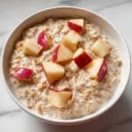 A nutritious and easy-to-prepare Overnight Oats recipe featuring rolled oats soaked overnight with milk, Greek yogurt, chia seeds, and sweetened with maple syrup, complemented by fresh diced apples and warm cinnamon for a wholesome breakfast.