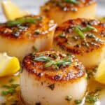 This pan-seared scallops recipe delivers tender, juicy scallops with a delicious golden crust. Ready in just 15 minutes, it’s perfect for a quick yet elegant main course. Served with simple accompaniments like lemon wedges, parsley, or garlic butter, these scallops are sure to impress at any dinner occasion.