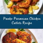 Panko Parmesan Chicken Cutlets are crispy, golden-brown chicken breasts coated with a flavorful blend of panko breadcrumbs, Parmesan cheese, and Italian spices. This easy-to-make Italian-American classic is perfect for a quick weeknight dinner or a satisfying main course served with lemon wedges and fresh parsley for a touch of brightness.